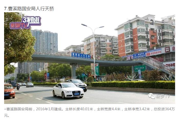 年來,市委、市政府加大市政基礎(chǔ)設(shè)施投入,大力推進人行天橋建設(shè)。截止2017年底,中心城市共興建20余座人行天橋。